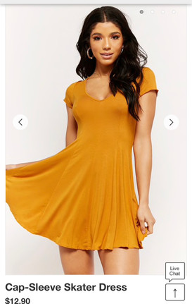 Head to Forever21.com and look for fit and flare short dresses. You'll find a ton for about $13 each. Here are some examples of what to look for! If you order online and they don't fit- just go return them- no harm no foul. A lot of women over the age of 21 (ha!) are uncomfortable going in store to shop, so just do it online! You have the best selection online anyway and you don't have to dig through a poorly organized store!